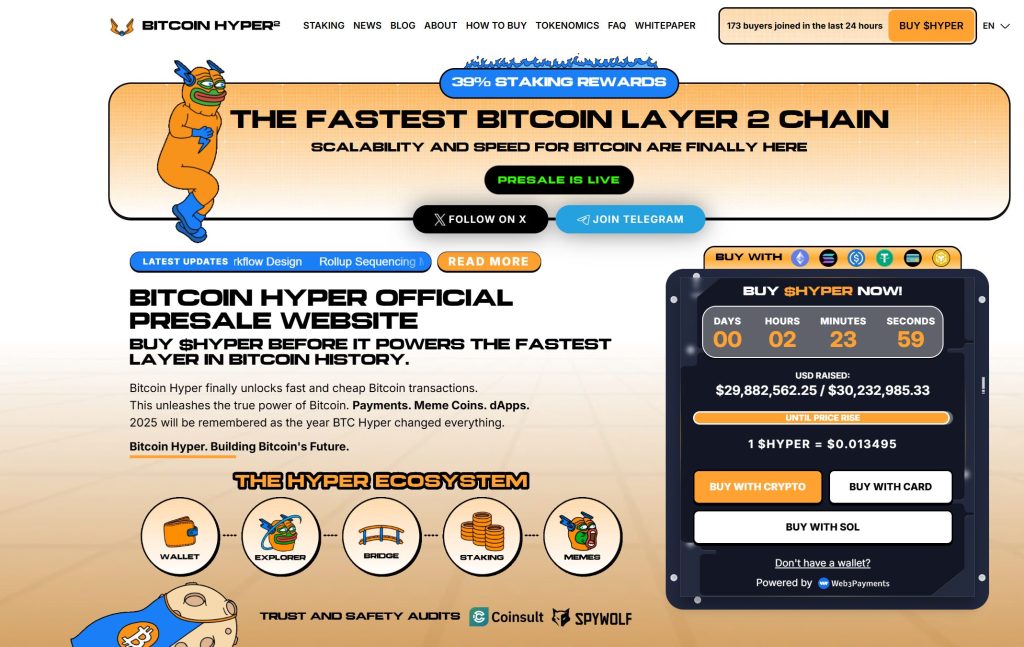 Bitcoin Hyper ($HYPER) is bringing a new phase to the Bitcoin ecosystem. While BTC remains the gold standard for security, Bitcoin Hyper adds what it always lacked: Solana-level speed. The result: lightning-fast, low-cost smart contracts, decentralized apps, and even meme coin creation, all secured by Bitcoin.
