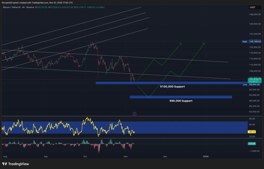 However, if this $100,000 floor breaks, the next support lies around $90,000, which could delay recovery and lead to extended consolidation.