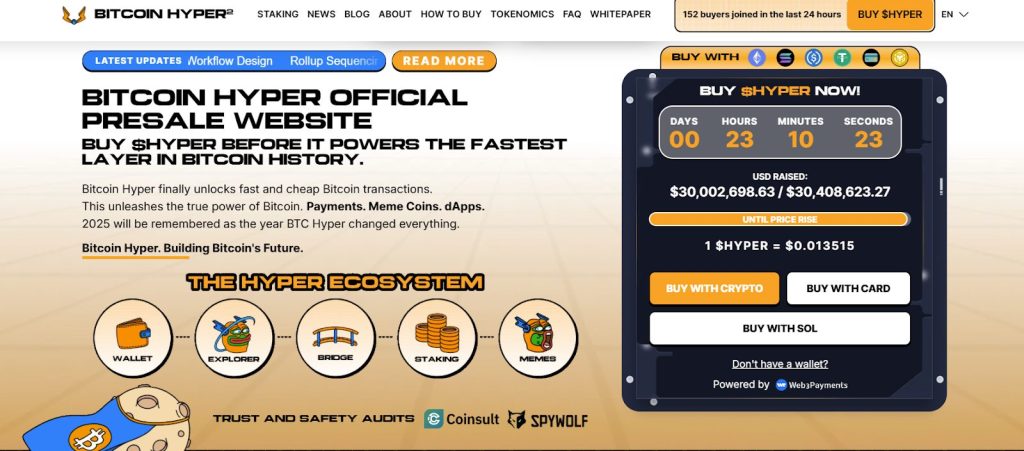 Bitcoin Hyper ($HYPER) is another project generating substantial attention as it develops the first functional Layer 2 solution for Bitcoin, utilizing Solana-based technology to deliver speed and scalability while preserving Bitcoin’s security model.