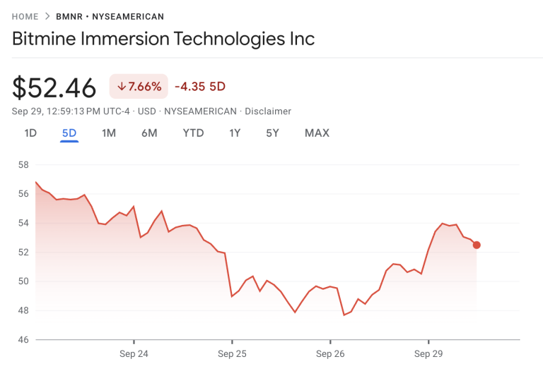 Even after Monday’s jump, BMNR shares remain below last week’s levels, suggesting that enthusiasm around Ethereum accumulation has not fully translated into sustained market confidence.