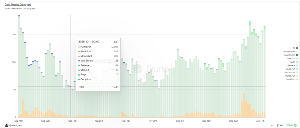 By July 2025, the platform had overtaken Pump.fun in market share, capturing over 55% of Solana’s token issuance during peak periods.