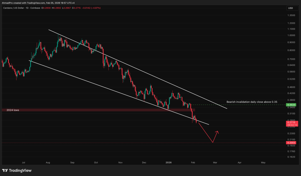 The bullish case depends on stabilization. If ADA can hold above $0.25 and stop making lower lows, a base can form quickly.