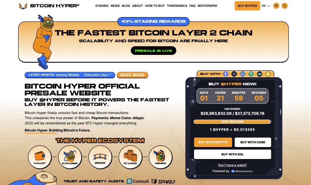 Bitcoin Hyper ($HYPER) Presale Nears $27M – A New Way for BTC Holders to Earn Safely and Efficiently