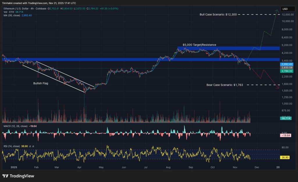 ETH currently faces heavy resistance in the upper $4,000 range. In Gemin’s bull-case scenario, achieving a breakout above this ceiling could pave the way for a new all-time high anywhere between $5,000 and $12,300 by Christmas.