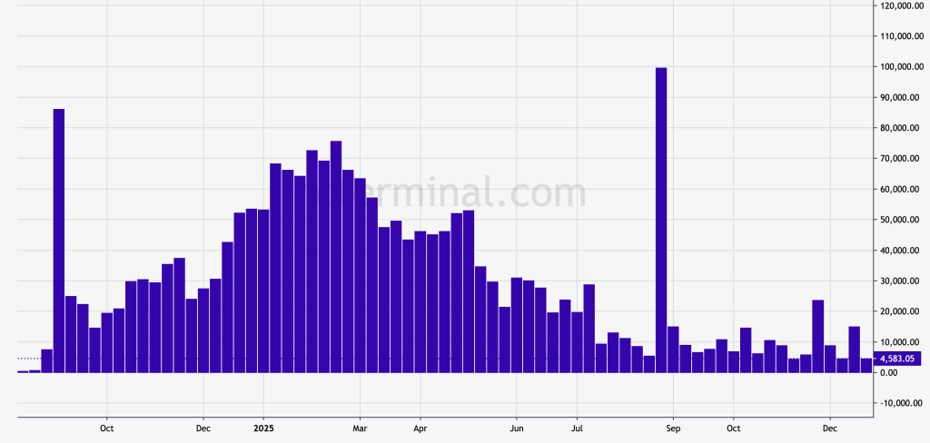 However, this year, over 20M tokens were added to the supply while only 1.6M were burned. This is because the network burn rate is at its lowest level since 2024.