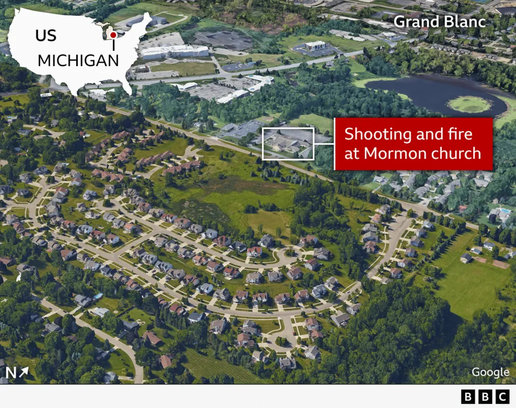 Four people were killed and eight others were injured when the suspect, Thomas Jacob Sanford, 40, attacked the Church of Jesus Christ of Latter-day Saints in Grand Blanc. He was later shot dead by police in the car park.