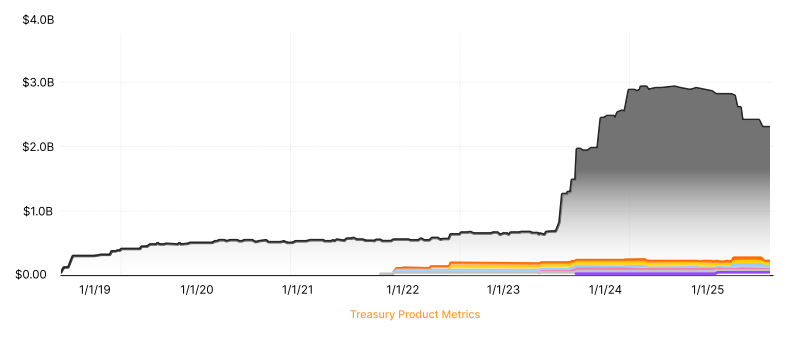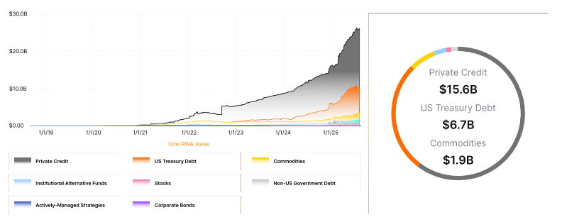 Notably, private credit and U.S. Treasuries dominate the sector, holding 15.6 billion and 6.7 billion dollars, respectively.