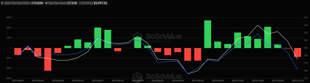 Moreover, the US ETH ETFs recorded $174.83 million in outflows on 10 October.