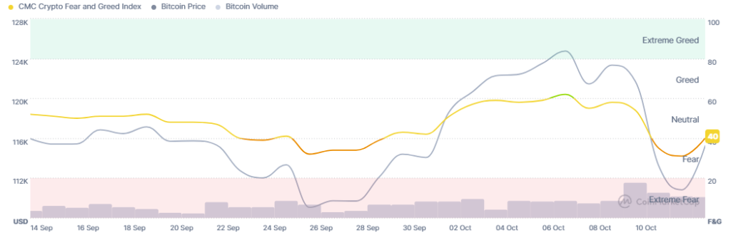 At the time of writing on Monday morning, BTC trades at $115,097. On 10 October, the coin dropped from $121,561 to $109,883 on 12 October. Since then, it has recovered to the current price.