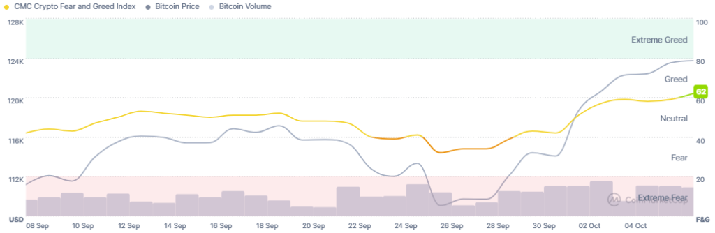 Meanwhile, the crypto market sentiment has moved into the greed zone. The crypto fear and greed index rose from 59 yesterday to 62 today. This is a notable increase from 42 recorded a week ago.
