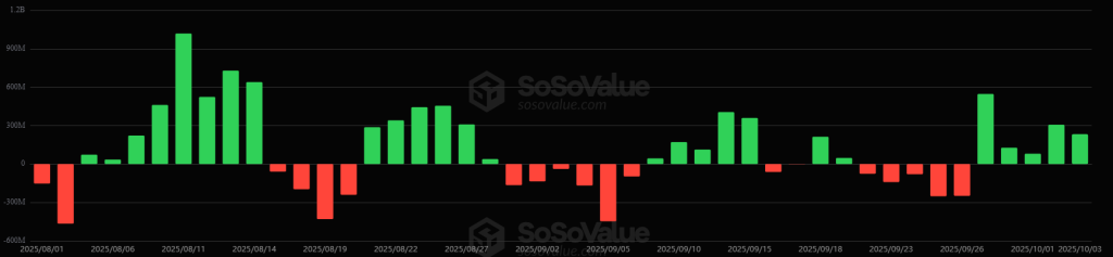 The US ETH ETFs also recorded inflows of $176.56 million on 6 October. The cumulative total net inflow is now at $14.6 billion.