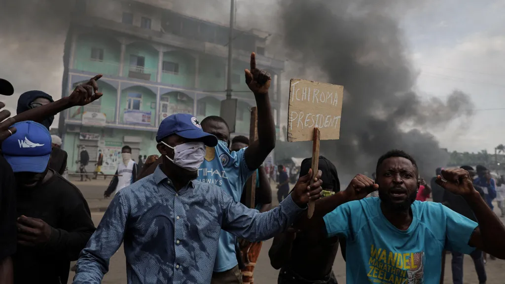 Strong southwesterly winds were complicating efforts to contain flare-ups, while several villages remained without electricity.