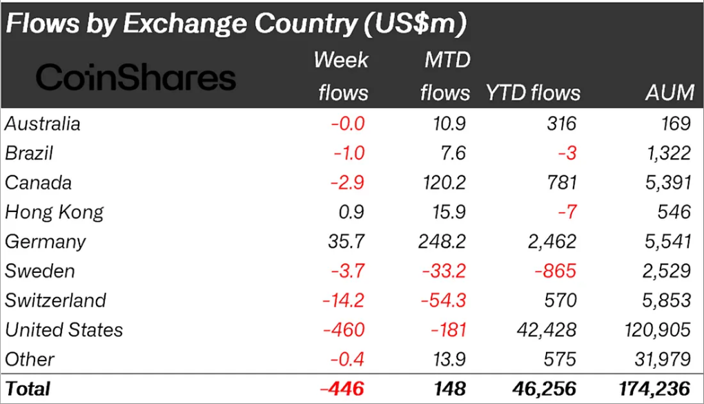 Conversely, German investors bought the dip. Germany-based funds posted $35.7 million in inflows, bringing their month-to-date accumulation to $248 million.