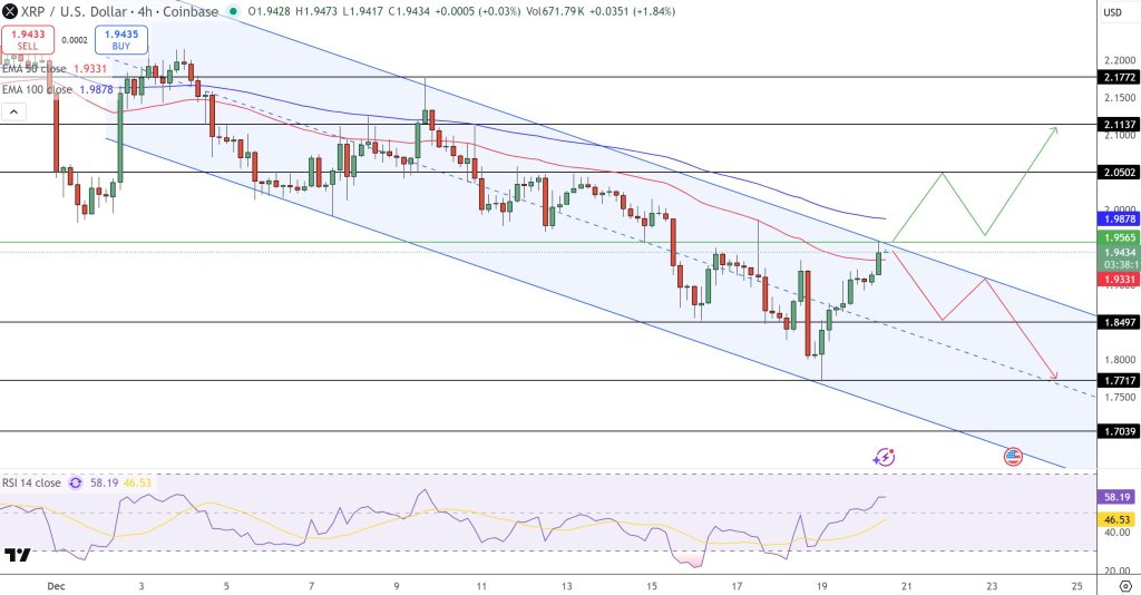 From a chart perspective, XRP price prediction seems bearish. XRP is trading within a descending channel that has capped rallies since early December. The rebound from $1.85 was technically constructive, with bullish candles and RSI recovering toward 58, signalling easing downside momentum.